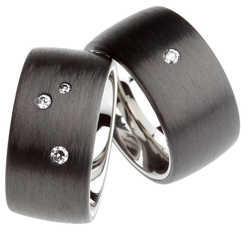 c.12600.b Ring Carbon 9 mm bombiert uni mit Brillant 0.025 ct.TW si