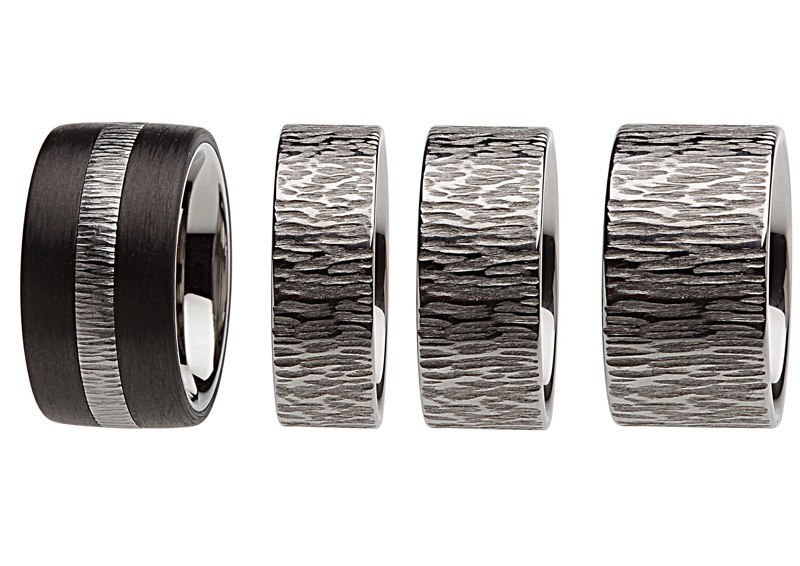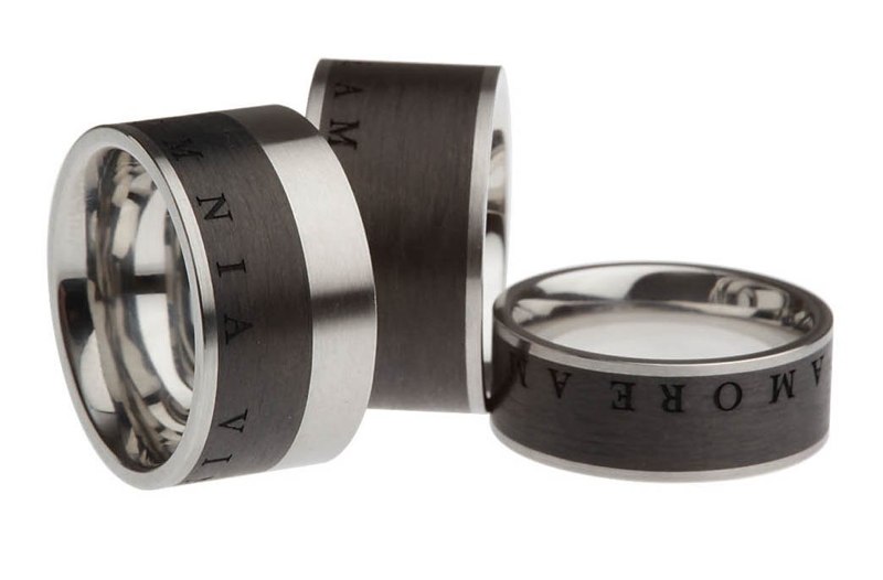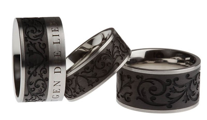 Carbon ist ein ultraleichtes, äusserst widerstandsfähiges und hautfreundliches Hightechmaterial, das – genau wie Diamant – aus natürlichem Kohlenstoff besteht. Wir nutzen die vorzüglichen Eigenschaften des manuell gefertigten Werkstoffes, kombinieren ihn mit erstklassigem Edelstahl und bringen auf der seidenmatten Carbonschicht mittels Laserstrahl-Tiefengravur hochpräzise Ornamente oder Wortbotschaften an. Durch die innovative Materialsymbiose und den Einsatz von Lasertechnik entstehen in aufwändiger Handarbeit extravagante Schmuckstücke, deren einzigartiger Charakter den persönlichen Stil ihrer Träger unterstreicht.